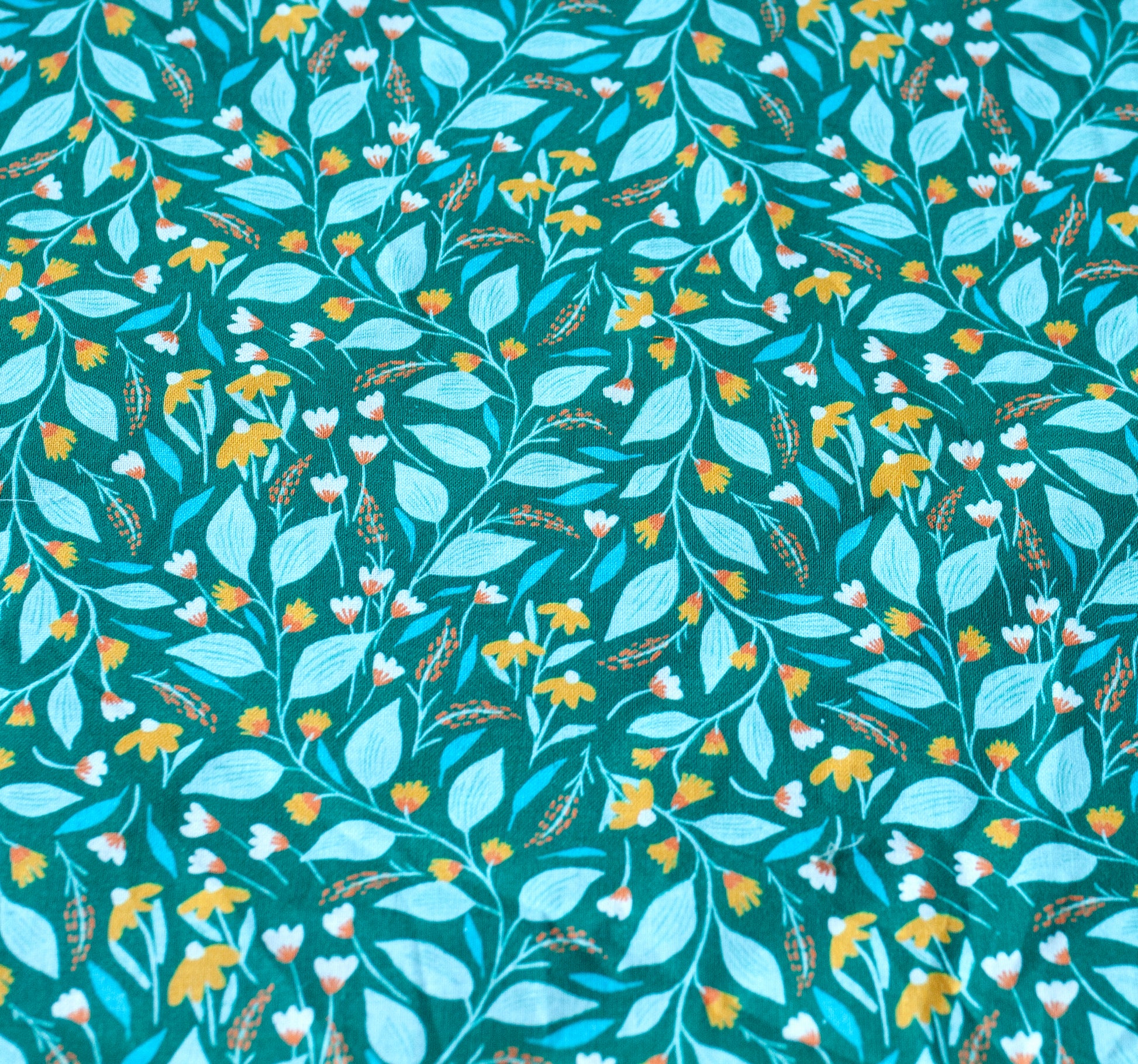High quality cotton poplin fabric with fresh blue floral botanical print..