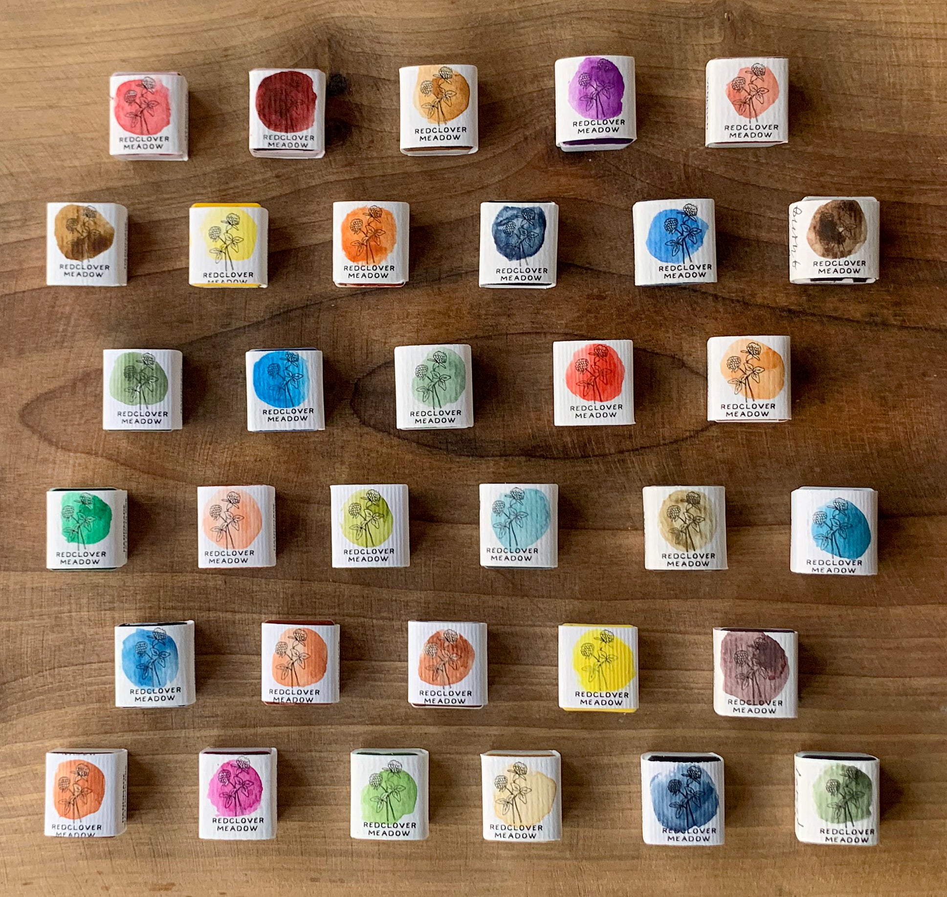 Our watercolors are high quality, have excellent lightfastness, and are non-toxic - cadmium, cobalt, lead, and mercury-free. Handcrafted according to a traditional recipe from premium pigments, pure gum arabic crystals, local organic honey, distilled water, glycerine, clove essential oil, and preservative. There are no other additives or fillers. Watercolors are mulled by hand on a glass slab. Each pan is hand poured multiple times and dries for at least three weeks. Some bubbles and cracks are possible to occur - this product is made by hand, not produced in a factory.