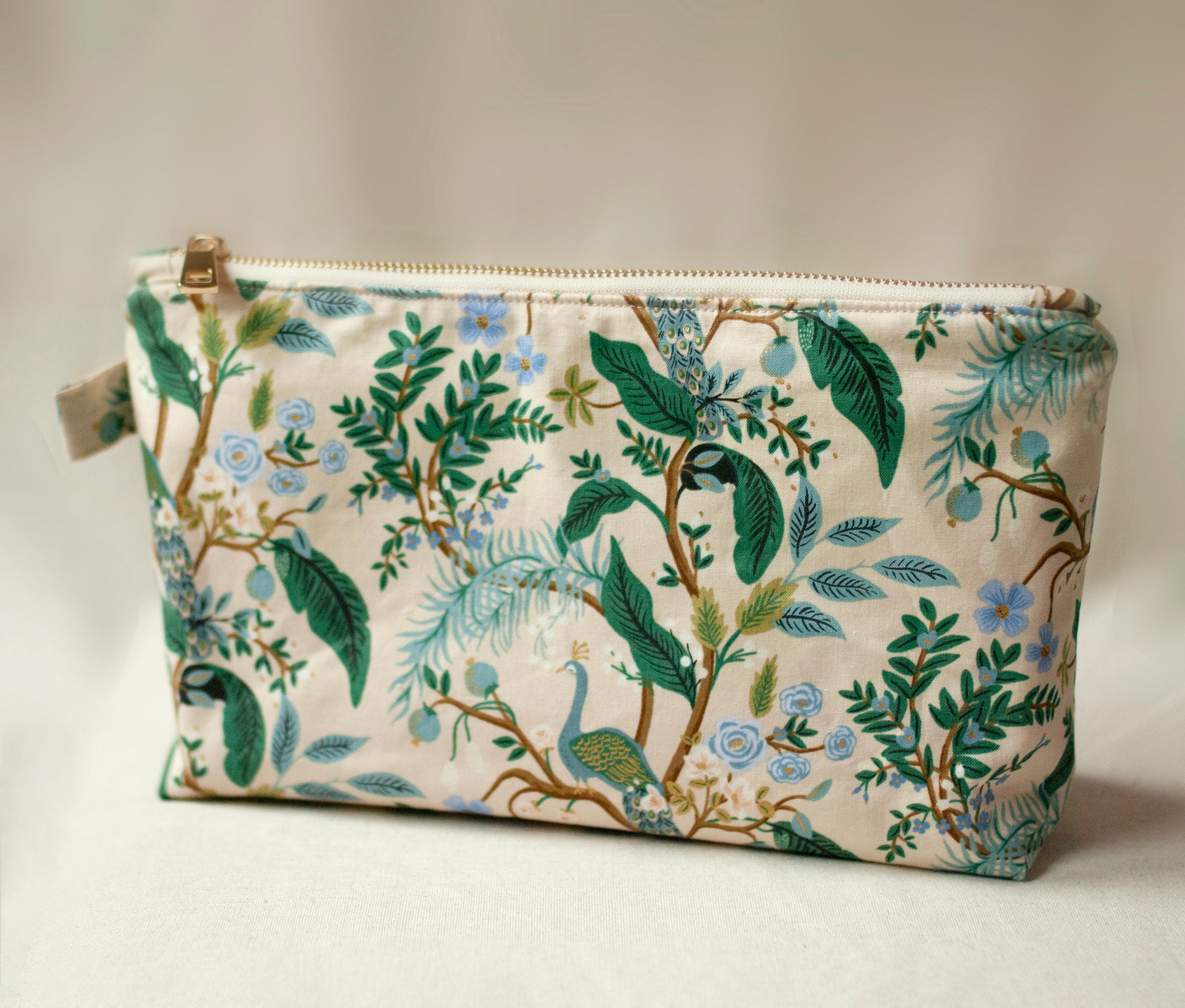 Bring a touch of artistry and color to your daily routine with this beautifully crafted Peacock Makeup Pouch. Made from high-quality Rifle Paper Co cotton fabric, this cosmetic bag features a stunning peacock feather pattern in shades of teal, blue, and soft gold perfect for anyone who loves nature, elegance, and a pop of color.